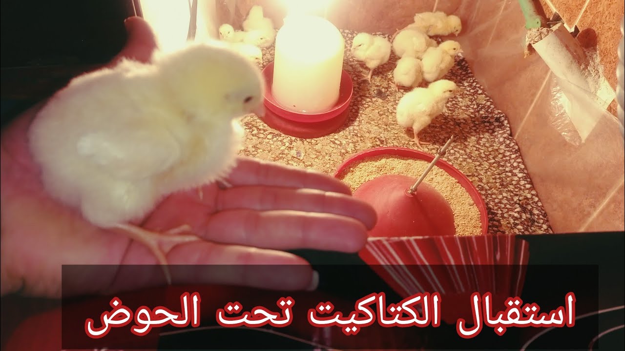 اليوم الاول من عمر الكتاكيت استقبال الكتاكيت تحويل واعلي الاوزان (تربية تحت الحوض)فراخ اون لاين